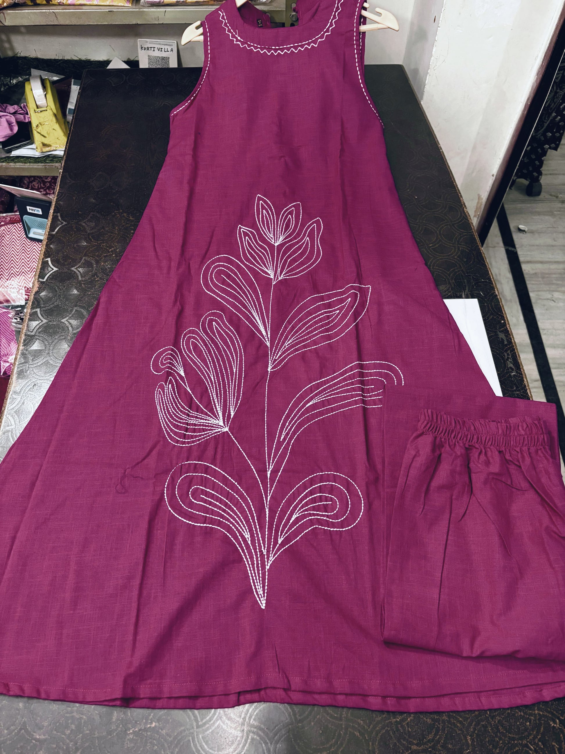 Introducing our soft Cotton Kurti Set a timeless classic for versatile elegance. This stunning Kurti set features likes floral embroidery work that is trendy and gorgeous. Made with high-quality cotton slub , this set is not only cool but also comfortable to wear. Elevate your style game with this must-have set!