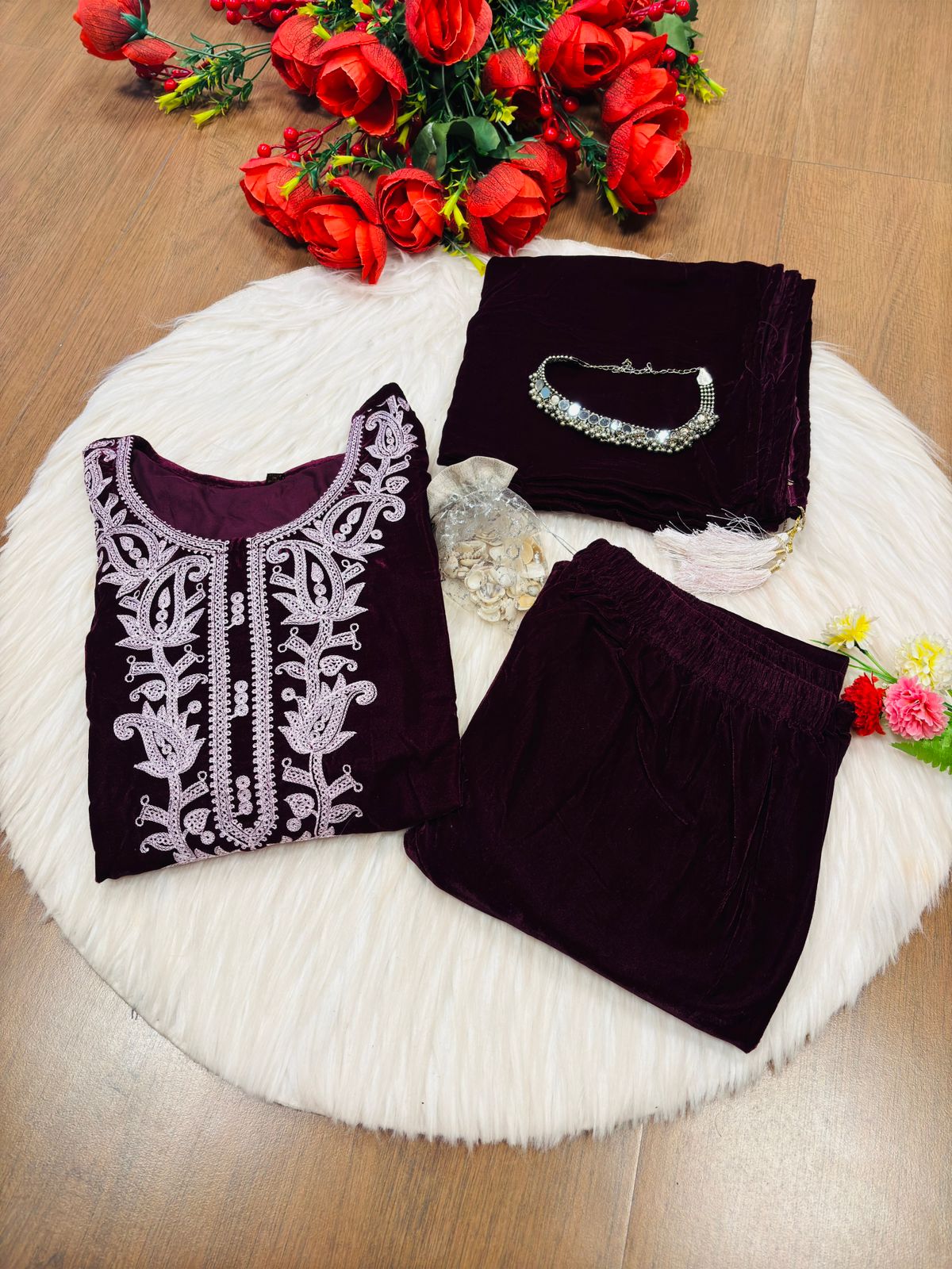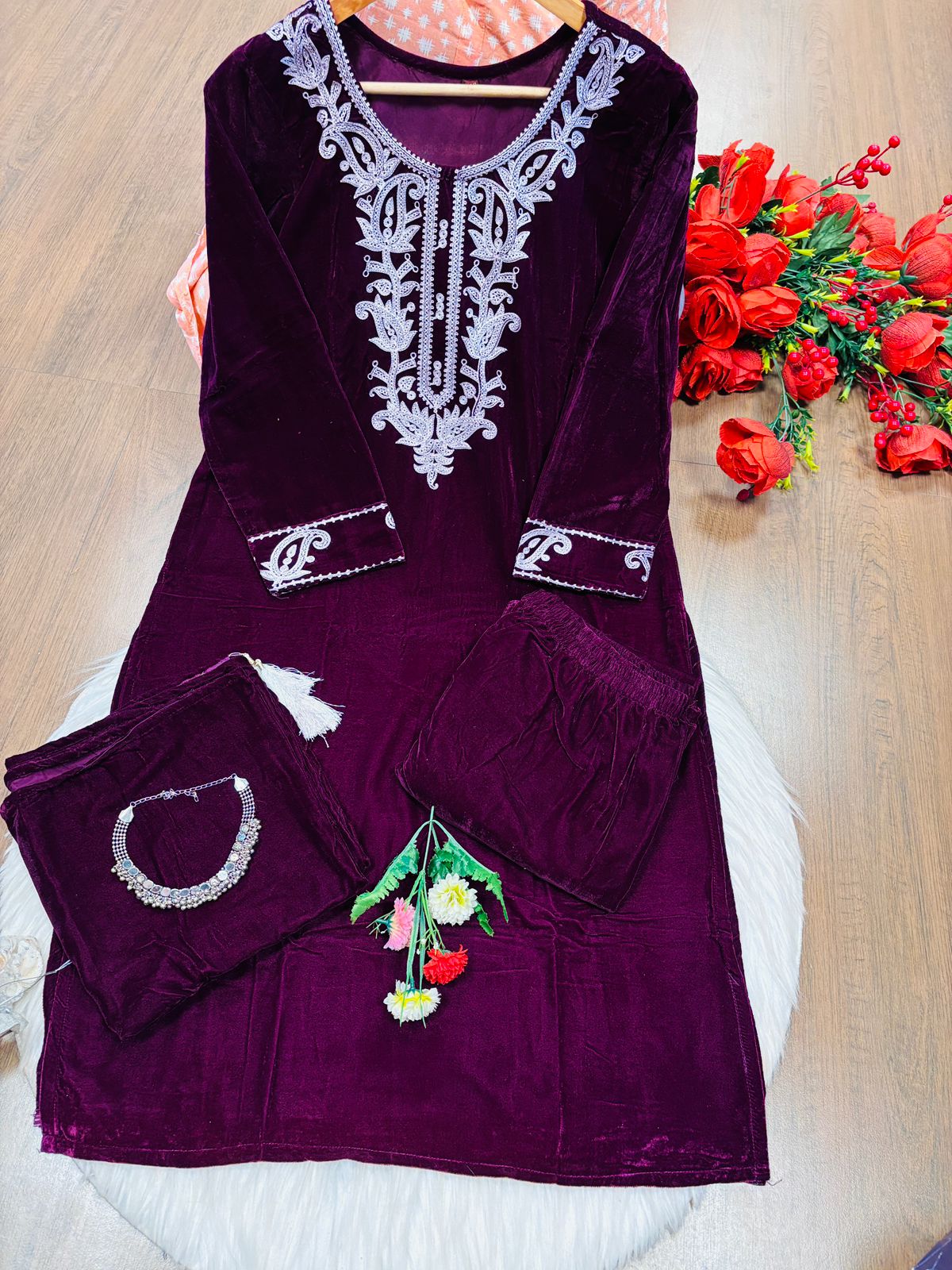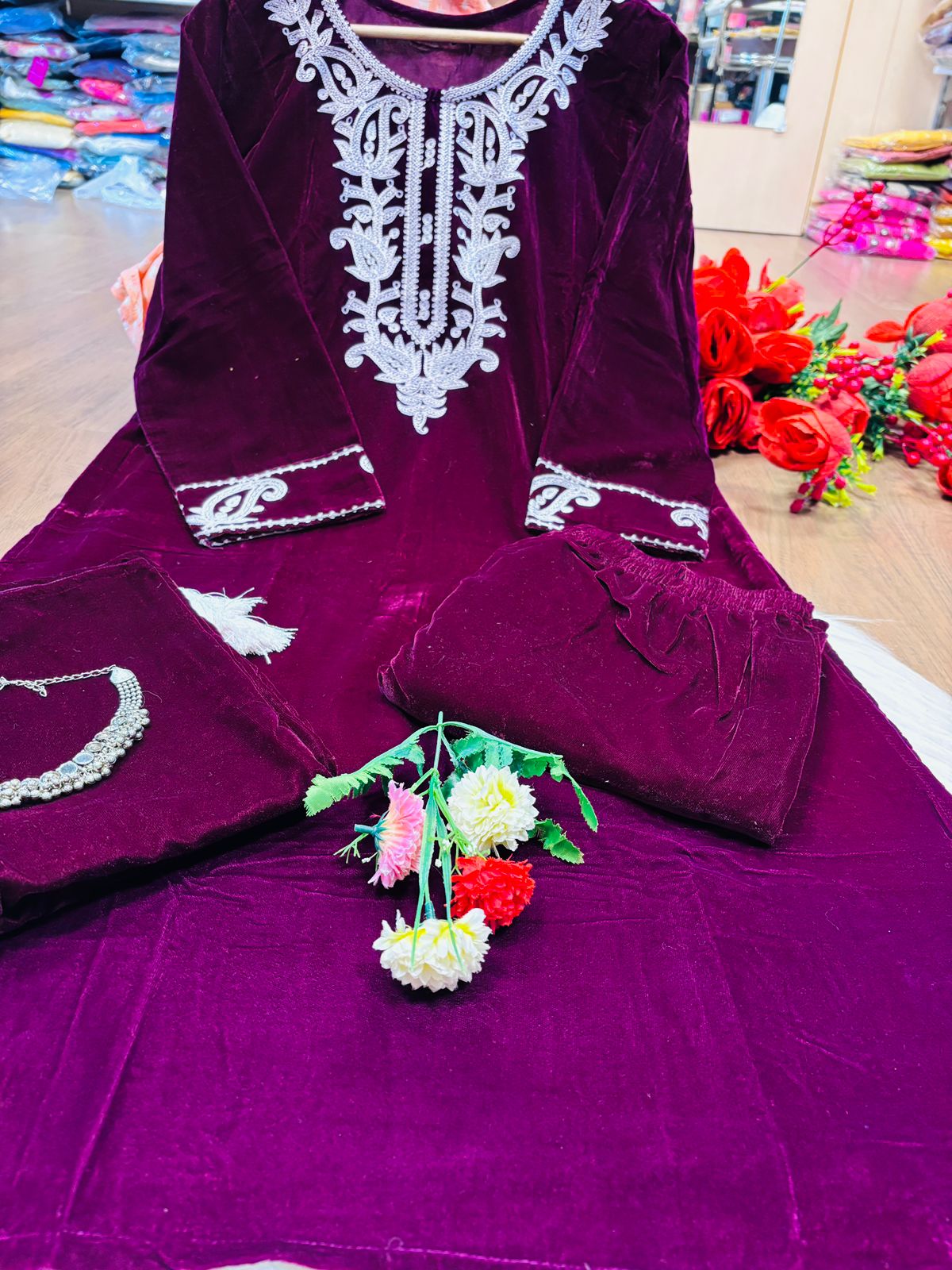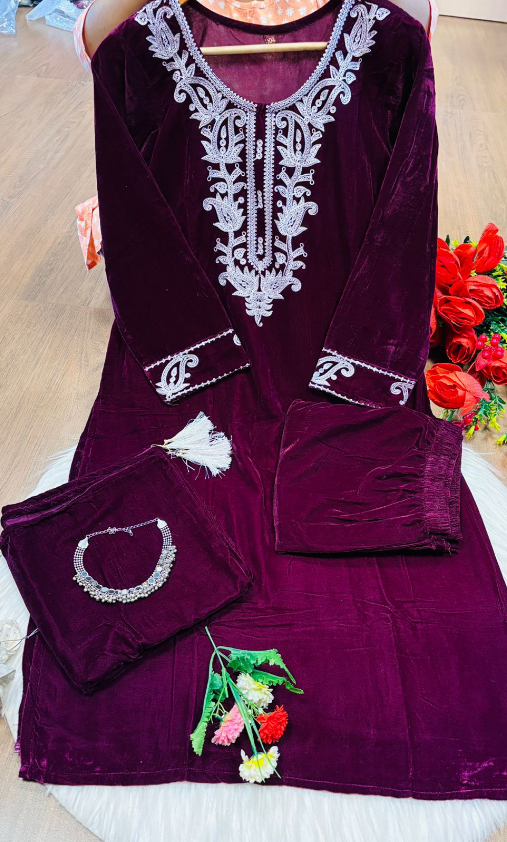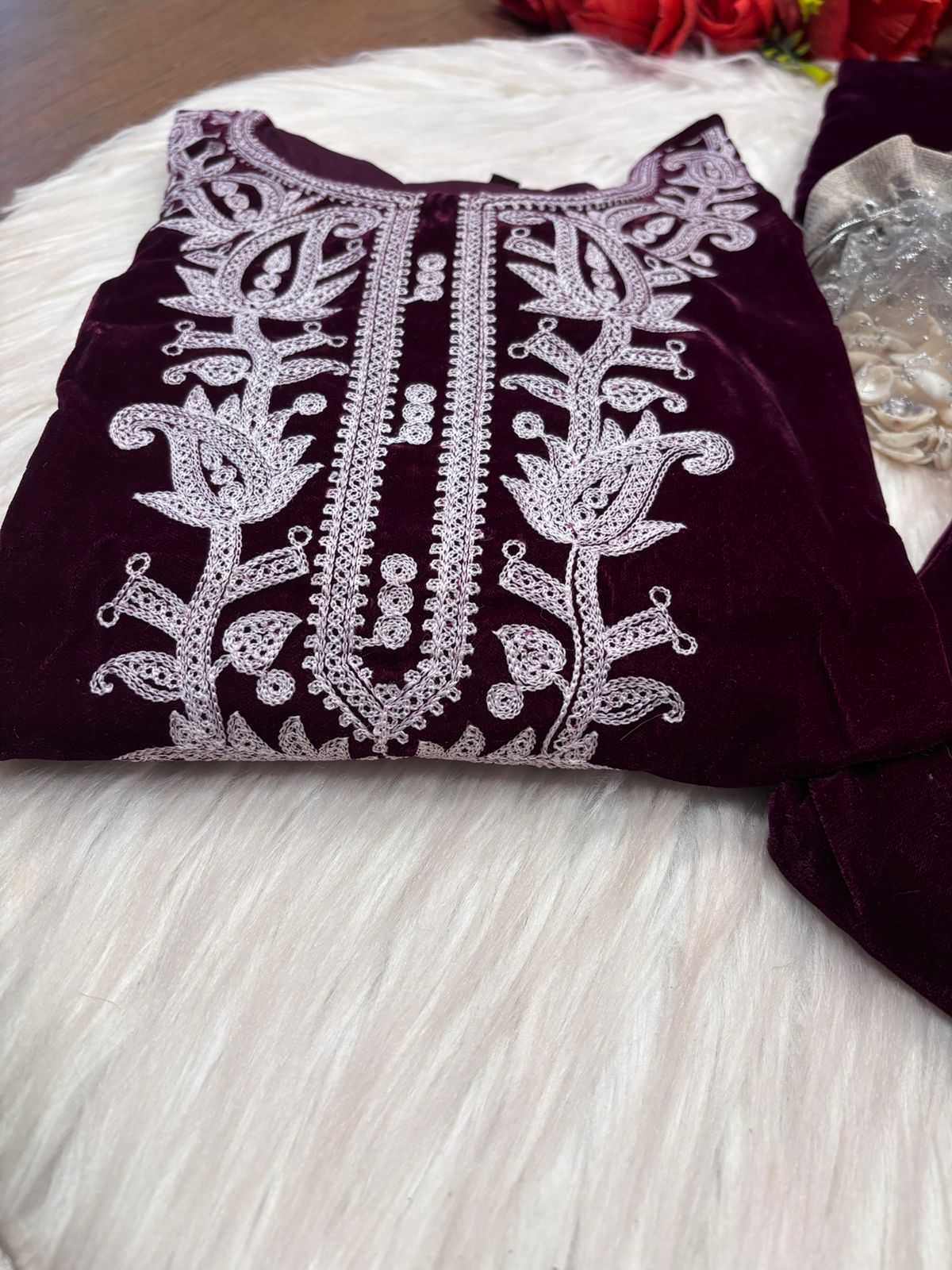 Top Fabric* :Heavy Velvet With Embroidery Work With Full-Sleeves