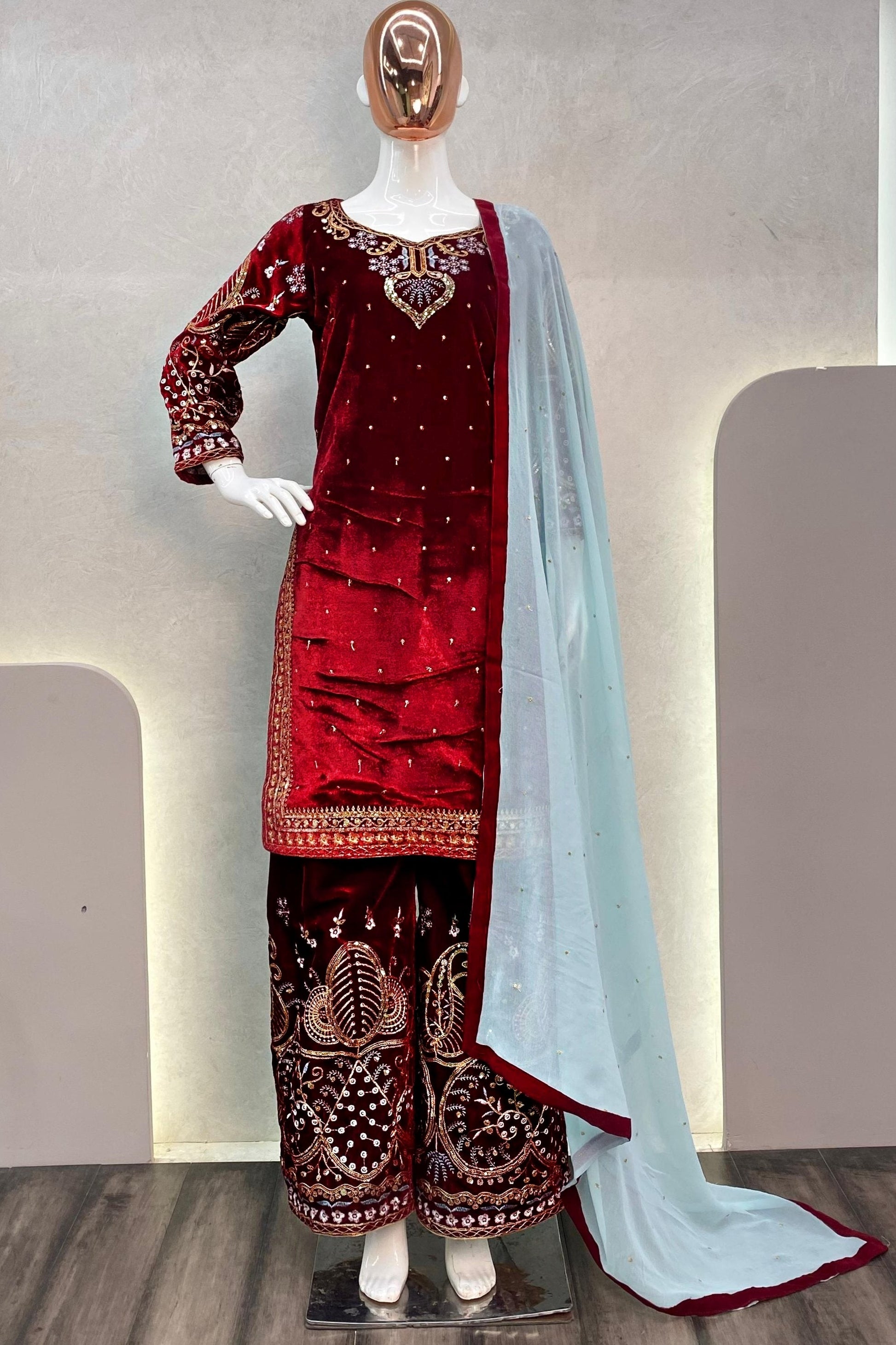 - Pant Fabric :Velvet with coding style sequins embroidery work [full stitched]